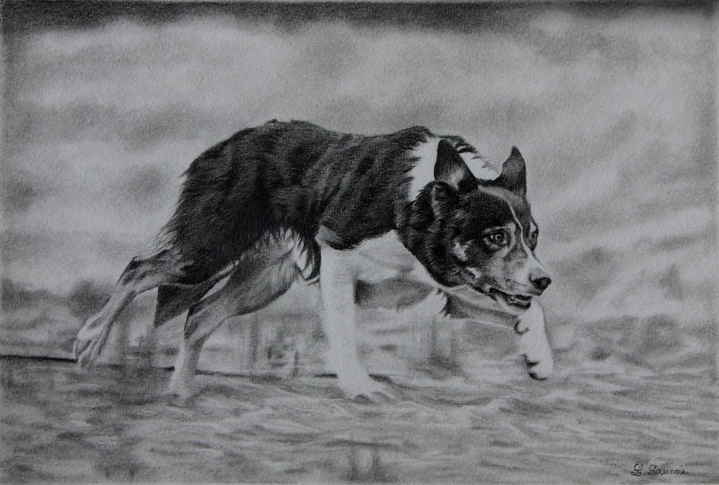 "Border Collie" - Drawing made with graphite pencils - 20 cm x 30 cm
