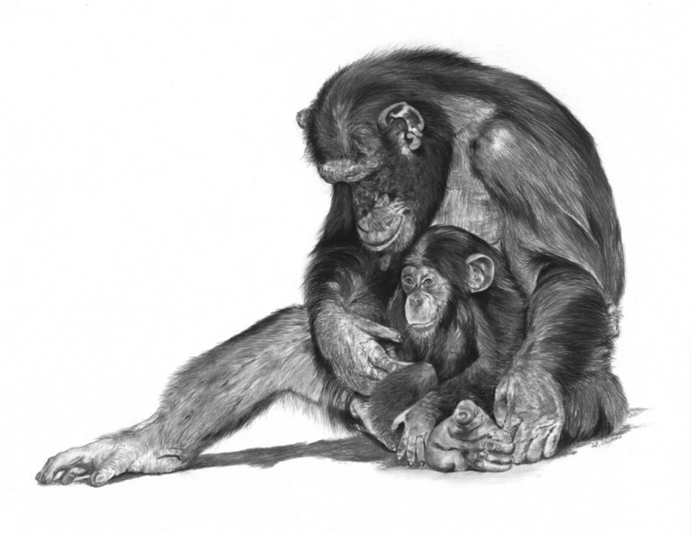 In 2016, my drawings of great apes were shown alongside Michel Bassompierre's sculptures in a beautiful exhibition organised by the François Pompon Museum in Saulieu.