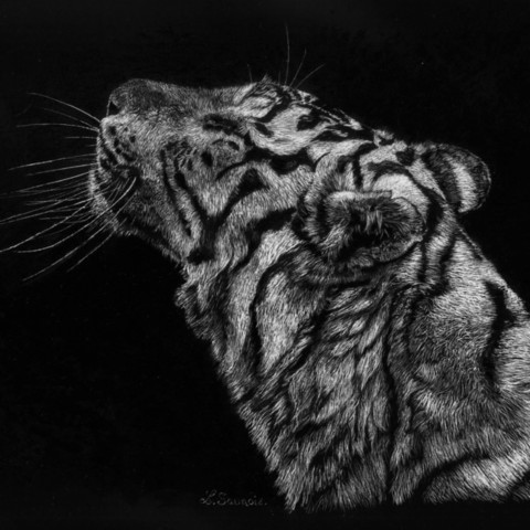 The scratchbord technique is similar to the technique of engraving. The artist "scratches" the black china ink surface to reveal the white clay that is just below. For this, it uses different tools ranging from simple tip scalpel through the sandpaper.