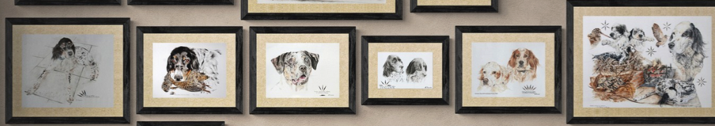 Here are some of the commissioned drawings I have done over the past few years. Portraits of dogs alone or in duet, even in trio and even a rider of the Republican Guard were born on paper thanks to woodcock feathers.