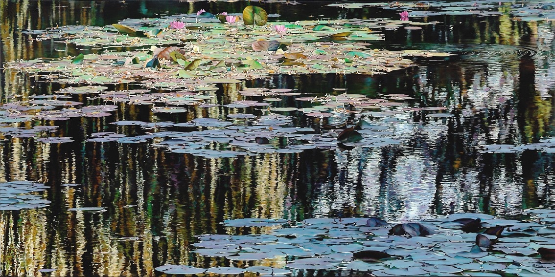 This large-format work was a real challenge for me. I had to learn a new way of painting and master color. This first painting, which depicts the water lilies in Claude Monet's garden, took four years to complete and required 1,000 hours of work.