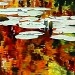 In this composition, the water lilies are imbued with reflections from a calm sky. These soft, luminous shades contrast with the energy of the autumnal colors that animate the entire scene. One particular element catches the eye: a willow branch, placed at the top right of the canvas. Its presence discreetly punctuates the scene and guides the viewer's gaze to the bottom of the pond.