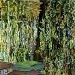 This painting was designed with a diagonal composition to give rhythm and dynamism to the work. The water lilies appear to be resting on the reflections of the colorful branches of the weeping willow, which bring verticality to the whole. The artist specifically chose this view, without traditional perspective, because it reminded her of a particular moment: when she watched, from the Japanese bridge in Claude Monet's garden, the reflections undulate and the light illuminate the water lilies. One detail in particular catches the eye: a red maple leaf, placed at the heart of the composition, which captures the viewer's gaze and serves as a focal point.